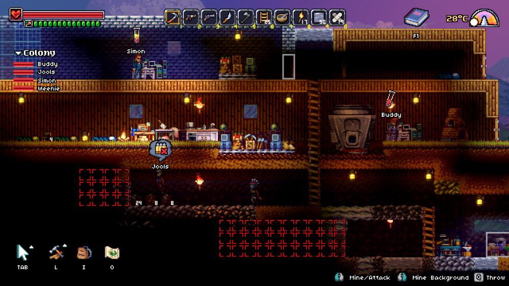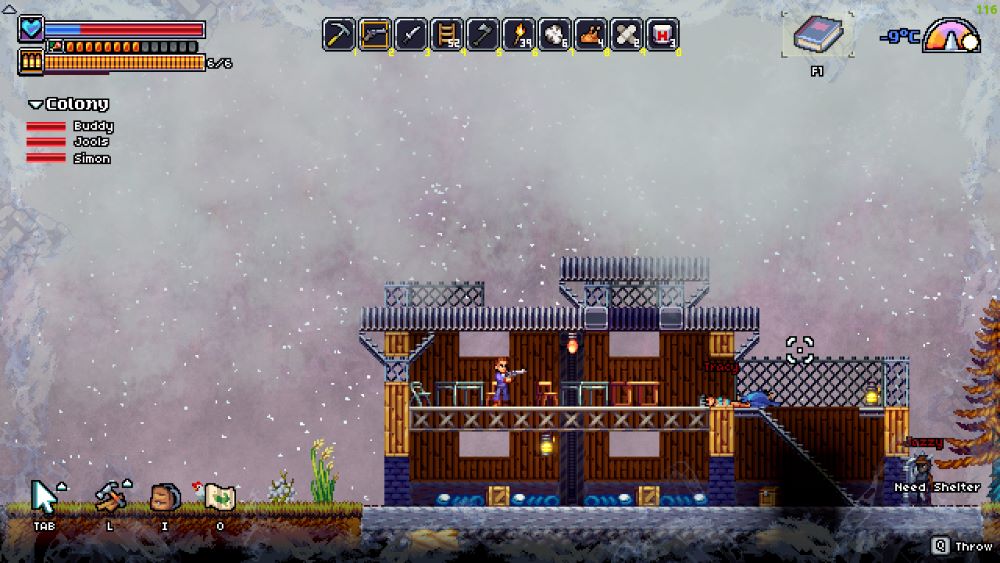 Terraria and Starbound both have NPCs that you can “recruit” to basically progress the game. They are not active members, but more like glorified workbenches or vendors. In colony sims like RimWorld and Oxygen Not Included, giving detailed orders and blueprinting out a base is important because you can’t control people directly. In exchange, you can see most of the map for planning purposes. Farworld Pioneers is a bastardization of the two – main character and colonists – and it just doesn’t work.